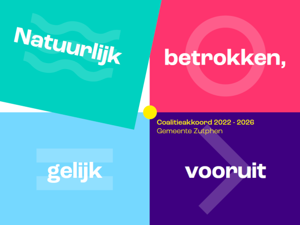 Voor u ligt het coalitieakkoord 2022-2026 van GroenLinks, Burgerbelang, Partij van de Arbeid en D66 voor de gemeente Zutphen.