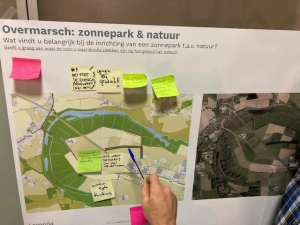 De meeste aanwezigen gaven aan dat zij graag betrokken worden, meedenken en meebeslissen op het moment dat zich een initiatief voor zonnevelden voordoet. Informeren via nieuwsbrieven en de website is genoemd, maar ook meeschetsen in werksessies.