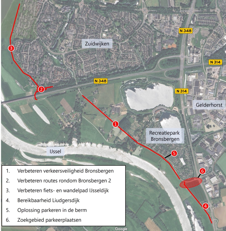 Waterschap Rijn en IJssel werkt aan de voorbereiding van de dijkversterking Den Elterweg-Zutphen. Dit biedt kansen voor het gebied. Kan recreatie bijvoorbeeld een grotere rol krijgen, wat is de verkeerssituatie en hoe zorgen we ervoor dat de dijk voor iedereen veilig is? Daarom onderzoeken de gemeente en het waterschap de mogelijkheden om de verkeersveiligheid op de Bronsbergen te verbeteren.