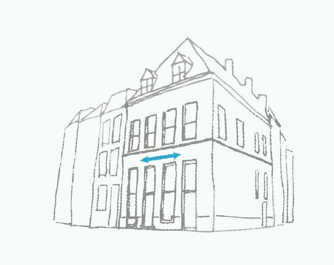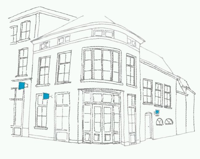 - De gevelopbouw en entree zijn leidend voor de locatie en maat van reclames.